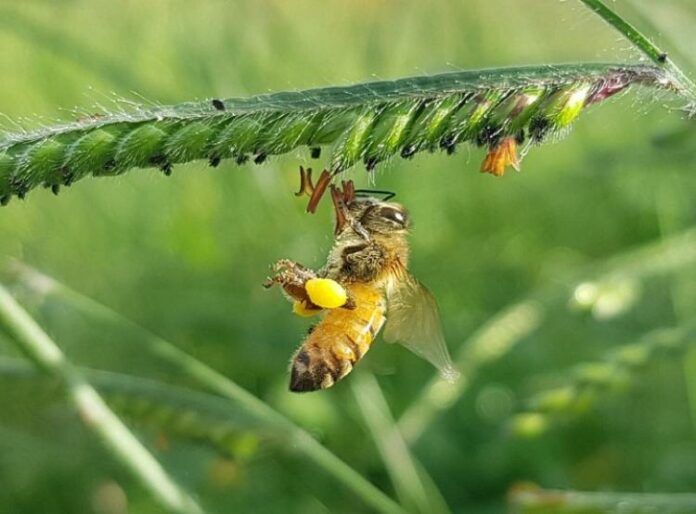 “Aquelas bolinhas que aparecem nas pernas das abelhas são o pólen apícola, retirado das flores. Elas o depositam no favo, onde acontece o processo de fermentação, como na silagem, se transformando no chamado ‘pão de abelha’. Este produto serve de alimento tanto para as crias como para as abelhas mais novas, por isso a coleta é realizada em dias alternados, dando intervalo de tempo para que as abelhas se supram também”, explica o doutor em Zootecnia, Produção Animal e Apicultura, Heber Luiz Pereira.