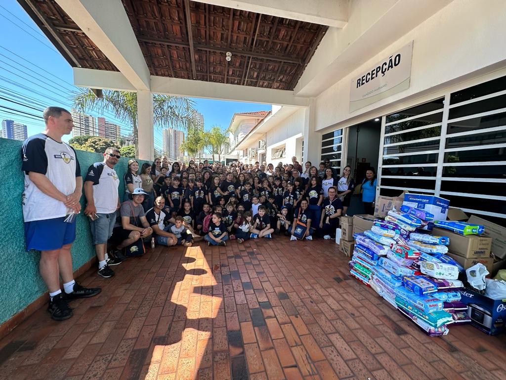 O trabalho de arrecadação aconteceu durante os dias de férias, as crianças se uniram para juntas os potinhos de vidros e pacotes de fraldas a fim de auxiliar as famílias que necessitam de apoio com a chegada do bebê.