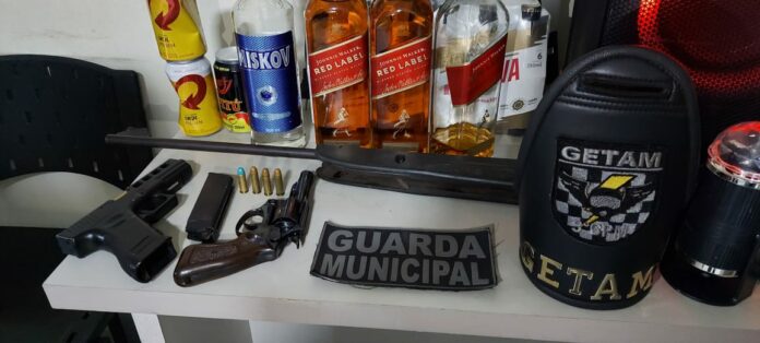 GM e PM apreendem revólver, bebidas e iluminação de DJ em festa clandestina