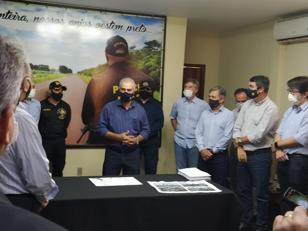 O Governador Reinaldo Azambuja (PSDB) juntamente com o vice-governador e secretário Estadual de Infraestrutura (Seinfra) Murilo Zauith (DEM), assinaram na manhã deste sábado (12), em Dourados, a autorização para inicio da construção da sede própria do Departamento de Operações de Fronteira (DOF) que será efetivada pela empresa Taurus Empreendimentos, que venceu o processo licitatório feito pela Agência Estadual de Empreendimentos (Agesul).