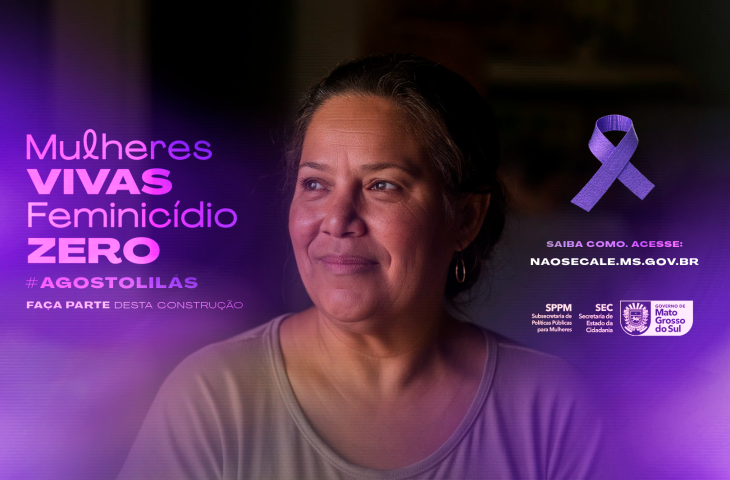 O Governo de Mato Grosso do Sul, através da SEC (Secretaria de Estado da Cidadania) e da Subsecretaria de Políticas Públicas para Mulheres, inicia nesta quinta-feira (1º) a campanha ‘Agosto Lilás: Mulheres Vivas, Feminicídio Zero’.