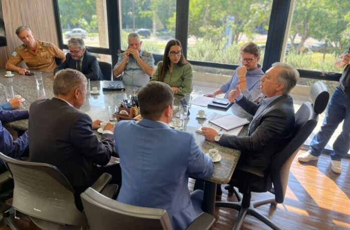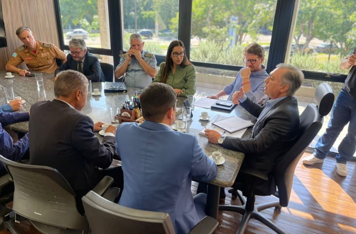O secretário Frederico Felini (SAD) e a secretária em exercício Ana Carolina Nardes (Segov), participaram da reunião juntamente com o coronel Frederico Reis Pouso Salas (comandante-geral do CBMMS), o coronel Renato dos Anjos Garnes (comandante-geral da PMMS) e o delegado-geral da PCMS, Lupérsio Degerone Lúcio. O encontro reuniu ainda o delegado André Matsushita Gonçalves (presidente da Adepol-MS), José Nascimento Sobrinho (investigador e presidente do Sinpol-MS), coronel Juracy Pereira da Paz (presidente da Associação dos Oficiais Militares), coronel Luidson Borges Tenório Noleto (presidente da Associação de Oficiais do Corpo de Bombeiros Militar), tenente Vanderlei Roberto Lorensetti (presidente da AME), e o subtenente Fabrício de Carvalho Moura (presidente da ACS).