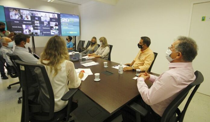 Por meio de uma videoconferência, o secretário de Governo e Gestão Estratégica, Sergio Murilo Mota, e a consultora legislativa Ana Carolina Ali Garcia esclareceram na quinta-feira (25) as dúvidas de prefeitos e procuradores jurídicos sobre o Decreto nº 15.638, que institui medidas restritivas para evitar a proliferação do coronavírus no Estado.