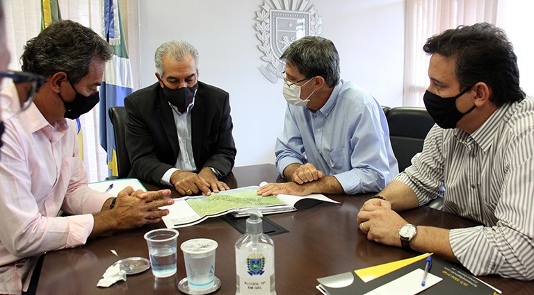 Também participaram do encontro de trabalho o secretário interino de Estado de Infraestrutura, Luis Roberto, o diretor-presidente da Agesul (Agência Estadual de Empreendimentos), Emerson Antônio, e o secretário de Infraestrutura e Serviços Públicos da Capital, Rudi Fiorese.