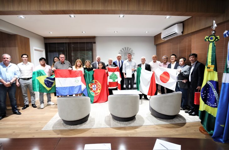 O governador Eduardo Riedel recebeu nesta quinta-feira (11) representantes das colônias japonesa, libanesa, paraguaia, portuguesa, boliviana, italiana e espanhola. Ele reforçou o apoio e a parceria com estes povos que ajudaram a construir a história e cultura de Mato Grosso do Sul.