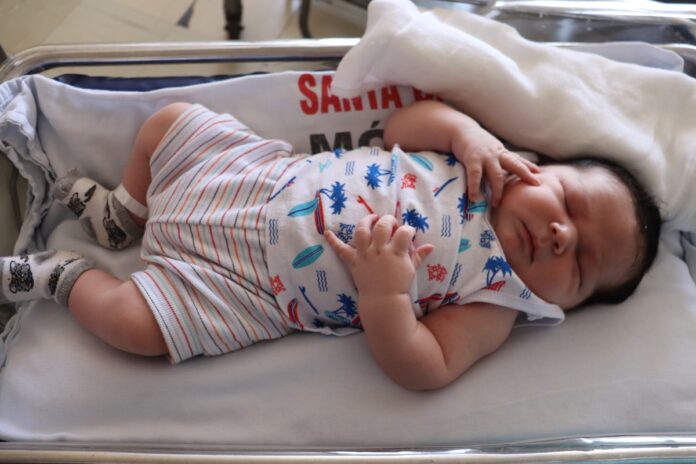 Com a idade gestacional de pouco mais de 39 semanas, Marcos Gabriel nasceu com 5 quilos e 745gramas e 52 centímetros de comprimento. É, sem dúvida, um bebê gigante. O tamanho e o peso do recém-nascido equivalem aos de uma criança com cerca de três meses, em que o peso estimado é de 5.500g. E nessa história, dois momentos surpreenderam a família e hoje são lembrados com muita alegria: o descobrimento da gravidez não programada e a chegada do “Grande Marcos”.