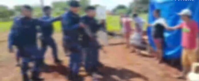 Um vídeo foi compartilhado nas redes sociais e mostra os guardas se aproximando, é possível ver alguns chutando cadeiras de plástico que estão no caminho, enquanto mulheres gritam avisando que há crianças no local.