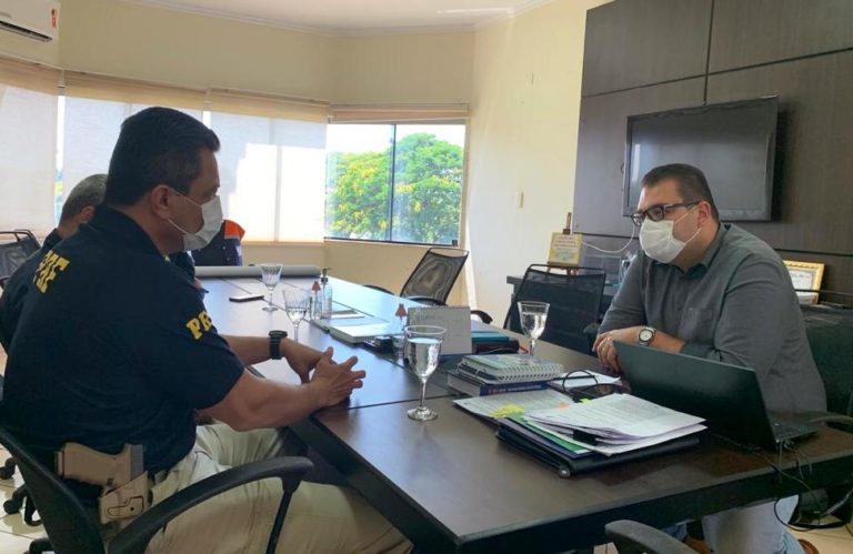 O prefeito Alan Guedes recebeu nesta terça-feira (28) o superintendente da PRF (Polícia Rodoviária Federal) de MS, Luís Alexandre Gomes, para debater projetos para segurança pública na faixa de fronteira com o Paraguai. Mato Grosso do Sul é o estado brasileiro que mais apreende drogas no país e a região sul obtém os maiores registros de apreensões de maconha.