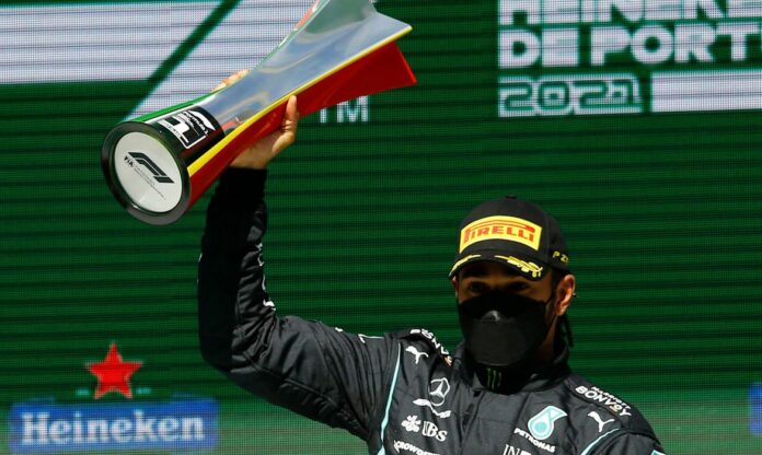 O heptacampeão mundial Lewis Hamilton venceu o Grande Prêmio de Portugal com a Mercedes neste domingo, aumentando para oito pontos a distância para Max Verstappen da Red Bull na tabela da Fórmula 1 após três corridas.