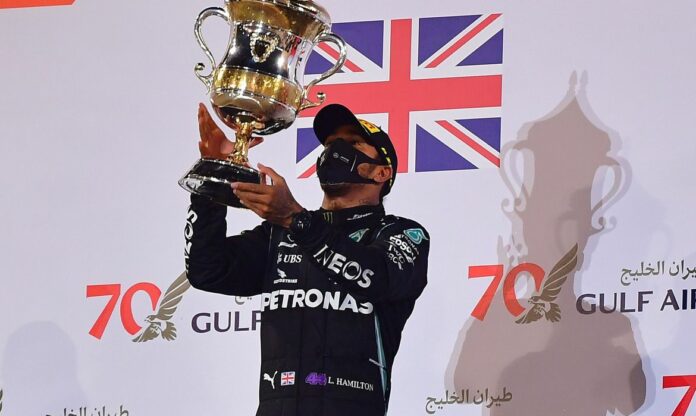 Lewis Hamilton conquistou a 95ª vitória na carreira, 11ª na temporada, ao cruzar a linha de chegada do GP do Bahrein, neste domingo (29). O britânico liderou a prova de ponta a ponta e não sofreu ameaças. Os dois carros da RBR completaram o pódio, com Max Verstappen em segundo e Alexander Albon chegando na terceira posição.