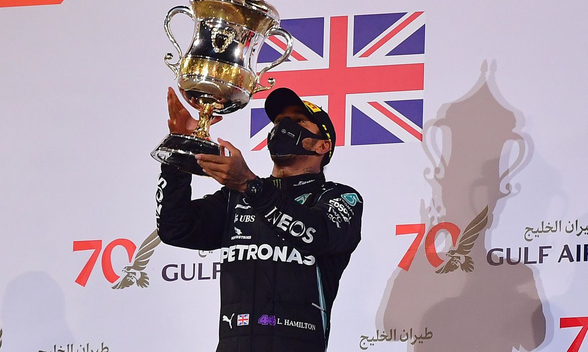 Lewis Hamilton conquistou a 95ª vitória na carreira, 11ª na temporada, ao cruzar a linha de chegada do GP do Bahrein, neste domingo (29). O britânico liderou a prova de ponta a ponta e não sofreu ameaças. Os dois carros da RBR completaram o pódio, com Max Verstappen em segundo e Alexander Albon chegando na terceira posição.