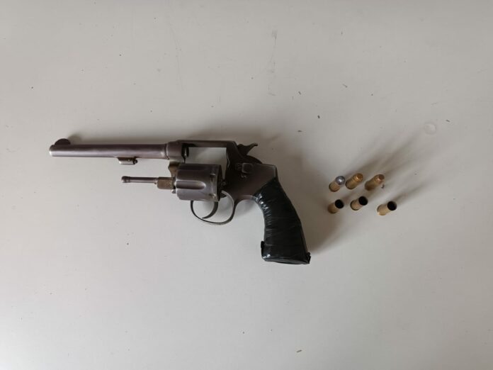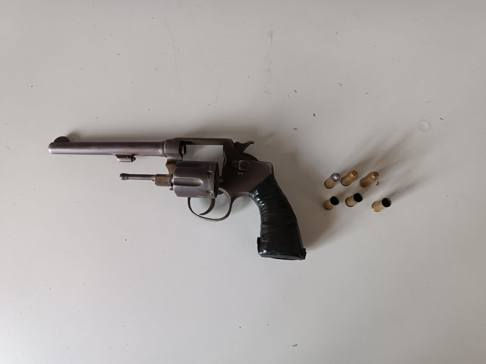 A arma usada no crime, de calibre 38, foi encontrada na casa dele, com a numeração suprimida e seis munições, sendo três deflagradas e três intactas.