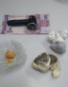 Consequentemente, o homem de 31 anos foi detido, pela Polícia Militar, por portar drogas para consumo pessoal.