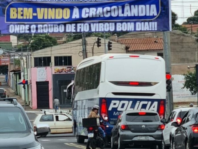Ônibus da PM é visto em rua do bairro Vila Nhá-Nhá (Foto: Redes Sociais)