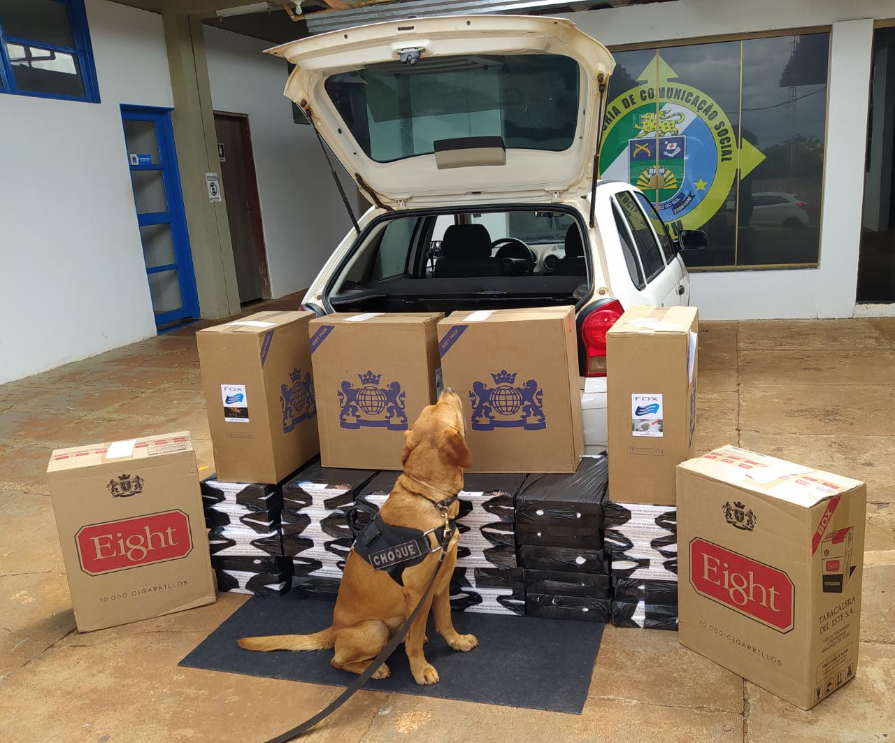 O carro com as caixas de cigarros foram apreendidos e serão encaminhados à Receita Federal de Ponta Porã.