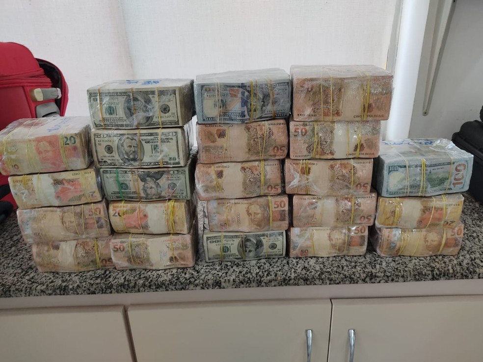 Segundo a PRF, a abordagem foi realizada na BR-163, sendo localizado o pedreiro na posse de duas malas cor de rosa. Ao serem abertas pela fiscalização, foram achados vários maços de dólares e reais, que estavam empacotados em embalagens de presente.