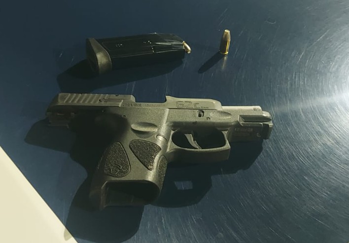 Na vistoria no interior do veículo, os militares encontraram uma pistola Taurus G2C, calibre 9 milímetros, com 12 munições no carregador e uma na câmara. A arma estava posicionada ao lado do motorista, na lateral da porta.