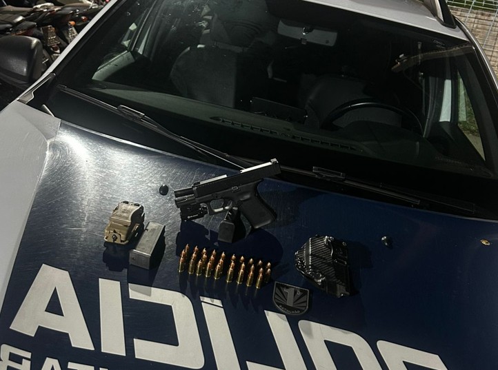 Durante a revista, os militares encontraram uma pistola Glock G19, calibre 9 mm, com dois carregadores, coldre e porta-carregador. Cada carregador estava municiado com 15 munições intactas, totalizando 30 munições, além de uma munição na câmara da arma.