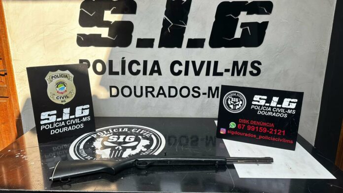 Durante as investigações, a equipe SIG-Dourados identificou o veículo e o motorista confessou a autoria. No veículo, foi apreendido um estojo de munição deflagrado.