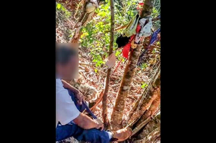 O bandido escondia as peças de roupa íntima no meio de uma mata e pendurava em uma espécie de varal improvisado. O local foi achado por um grupo de mulheres que queria agredir o homem.