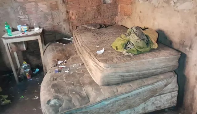 Ao chegar os fatos, foi constatado acúmulo de lixo pelo terreno, além disso, situação de higiene precária com o colchão de cama com resíduos de urina e as vítimas sem peças de roupas limpas.