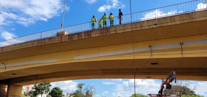 Homem é socorrido pelo Corpo de Bombeiros ao tentar o suicídio em viaduto na Capital
