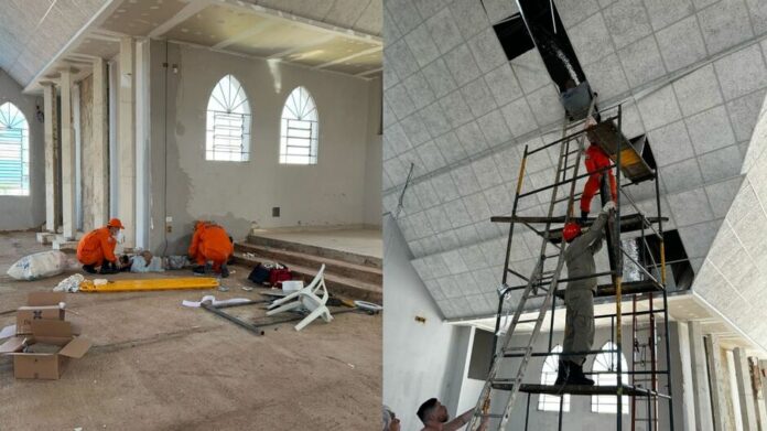 Homem que instalava forro em igreja na Capital cai de uma altura de 4 metros e sofre fratura no joelho