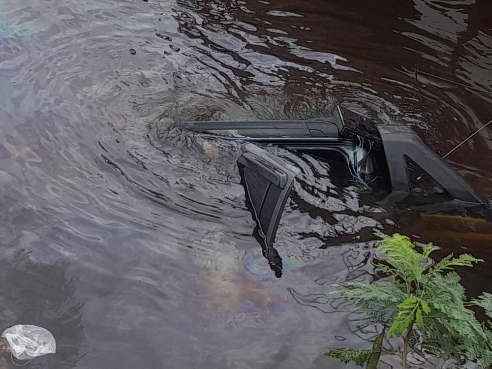 Ao desengatar, o veículo acabou descendo e caiu no rio. Tanto a caminhonete quanto o barco afundaram, inclusive, houve vazamento de diesel. Uma força-tarefa deve ser feita para retirar o veículo.