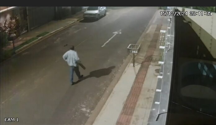 Somado a isso, a polícia obteve imagens de câmeras de videomonitoramento de imóveis vizinhos que mostram o autor andando com o pedaço de madeira nas mãos.