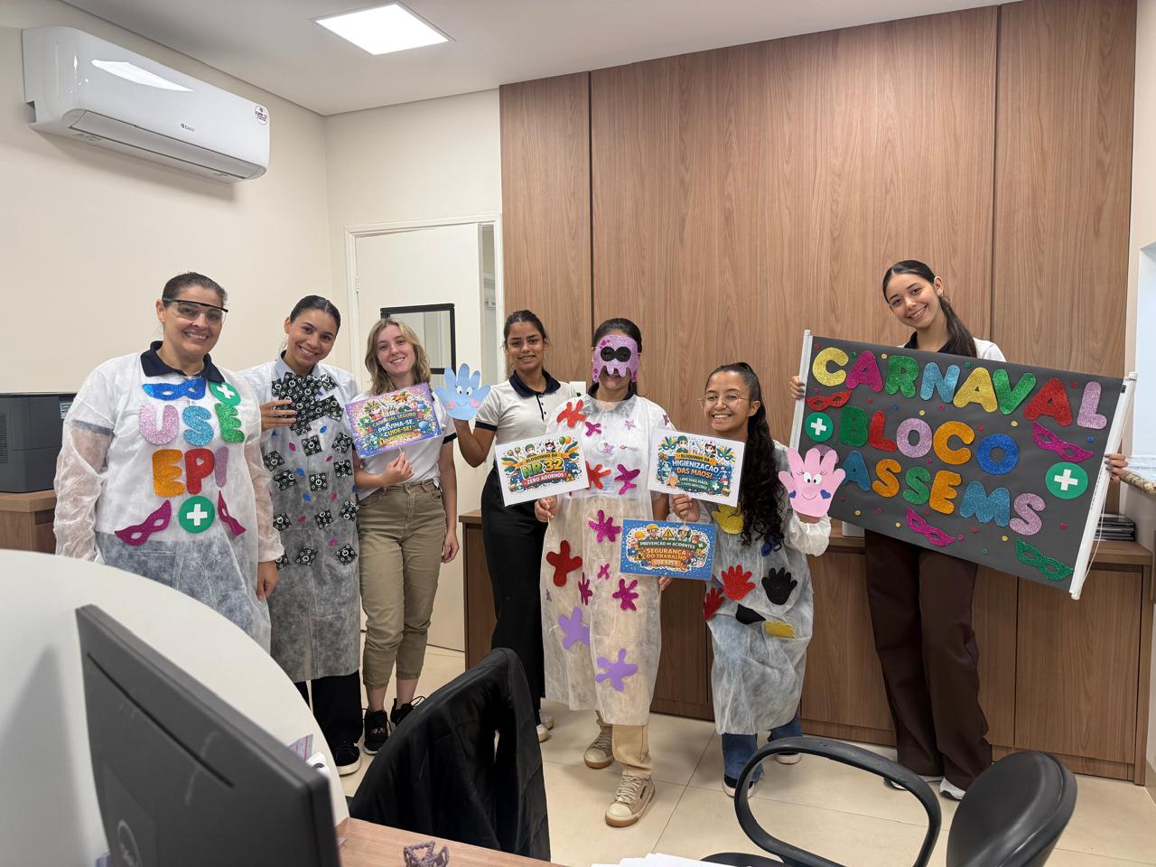 Uma das analogias mais marcantes da campanha foi o paralelo entre a fantasia do folião e o uso dos EPIs. No ambiente de saúde, a “fantasia” de proteção é o equipamento de segurança e o compromisso com o Adorno Zero; a diferença é que, nesse caso, o traje é o que garante a integridade de quem cuida e de quem é cuidado.