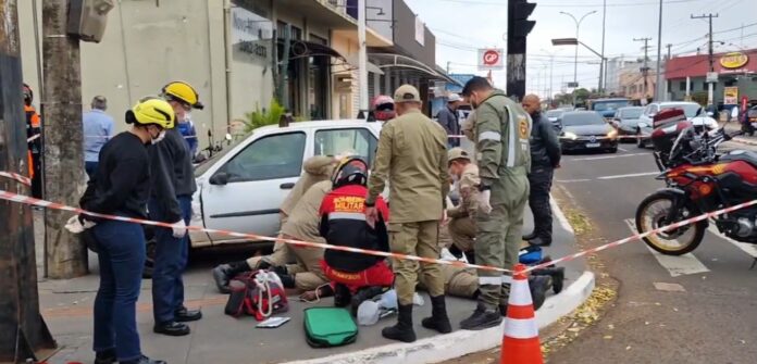 Testemunhas disseram que o veículo desceu a Rua Nioaque na contramão e só parou ao bater contra um poste de energia.