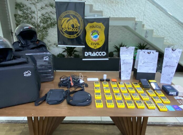 Durante a prisão, a investigação identificou dois imóveis utilizados pela organização criminosa, onde foram encontradas as maquininhas de cartão, celulares e mochilas de entregador.
