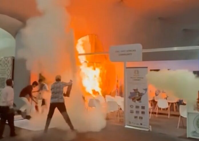 Chamas ocorreram na Blue Zone, área das negociações oficiais; equipes de segurança e bombeiros controlaram o fogo rapidamente