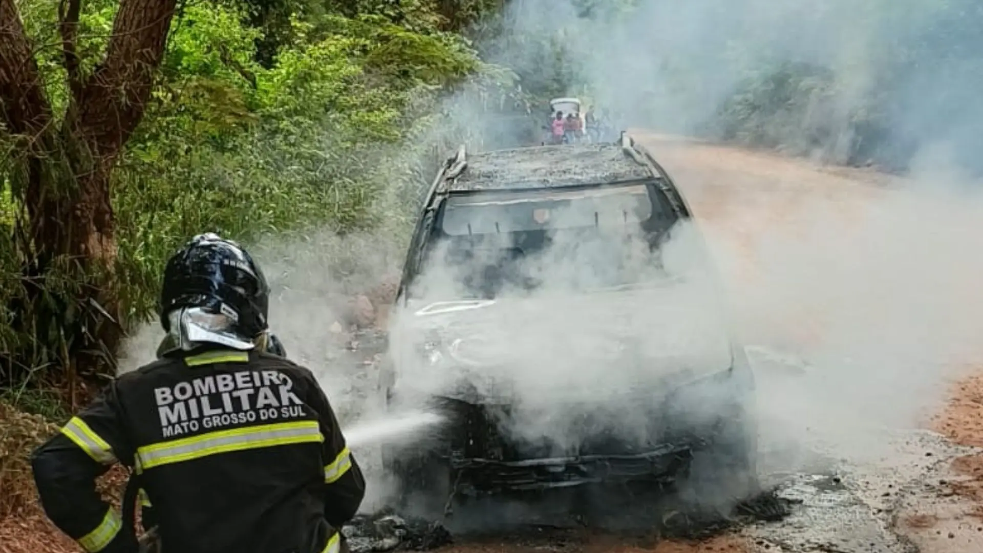 A ocorrência foi atendida por volta das 15h, na estrada de acesso à Área de Proteção Ambiental (APA) Baía Negra, região conhecida como antiga Codrasa. Quando a guarnição chegou ao local, o automóvel já estava totalmente tomado pelo fogo.