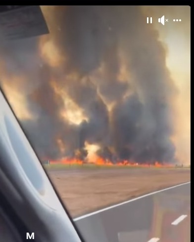 Imagens compartilhadas nas redes sociais mostram caminhões passando pelo trecho que está tomado pela fumaça. Um veículo, modelo Chevrolet Vectra, foi visto incendiado sob uma árvore, próximo a uma cerca com acesso.