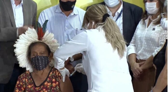 Domingas da Silva é da etnia Terena e reside na Aldeinha do Tereré em Sidrolândia. Ela disse que, como indígena, ficou muito feliz em receber a primeira dose. “Graças a Deus, Graças a Deus”, se é pra gente tomar essa vacina, vamos tomar” afirmou após receber a dose da Coronavac.