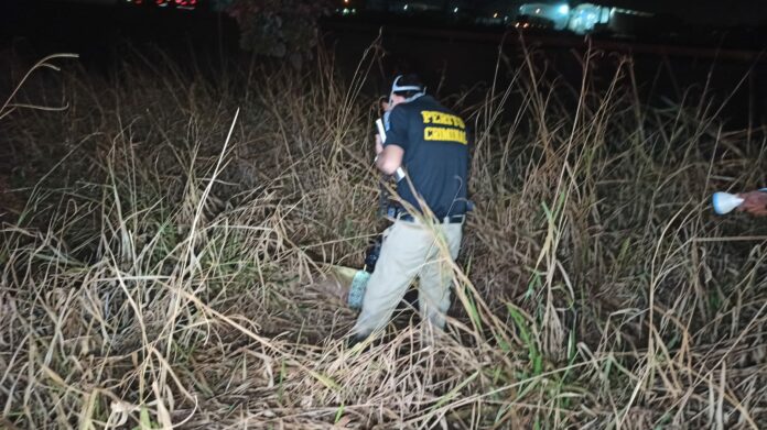 O corpo do sexo feminino estava em estado avançado de decomposição, com peça do shorts abaixada na altura do quadril, próximo ao poste na margem da rodovia.