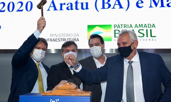 No Twitter, o ministro da Infraestrutura, Tarcísio de Freitas, comemorou o resultado do leilão.