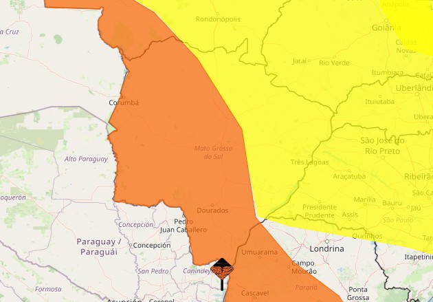 O Instituto Nacional de Meteorologia (Inmet) emitiu, neste sábado (11), um alerta de perigo potencial de chuvas intensas para todas as cidades de Mato Grosso do Sul. Segundo o instituto, as condições climáticas devem se estender até segunda-feira (13), afetando todo o Estado, especialmente durante o período da noite do feriado de criação do Estado.