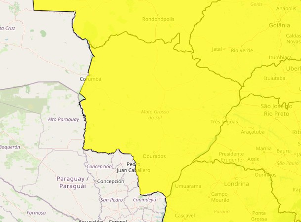 Em Campo Grande, a previsão indica chuva forte, com potencial para interrupções no fornecimento de energia, queda de galhos e alagamentos pontuais. O Inmet estima precipitação de 20 a 30 milímetros por hora, podendo atingir até 50 milímetros ao longo do dia, com possibilidade de granizo.