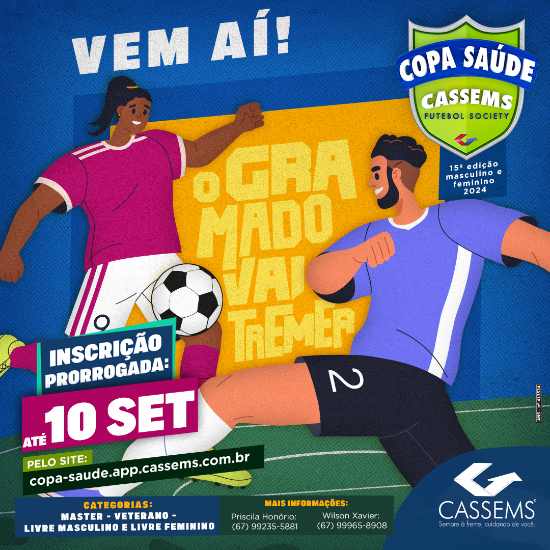 A Caixa de Assistência dos Servidores do Estado de Mato Grosso do Sul (Cassems) prorrogou as inscrições para a 15ª edição da Copa Saúde Cassems e os interessados em disputar o campeonato podem inscrever sua(s) equipes até 10 de setembro.