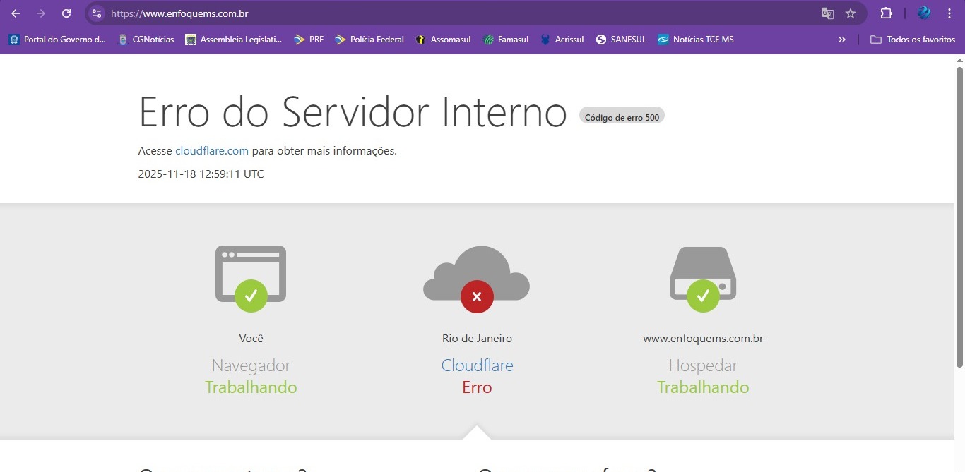 Instabilidade no serviço de nuvem deixa Enfoque MS, rede social X, ChatGPT e outros sites fora do ar
