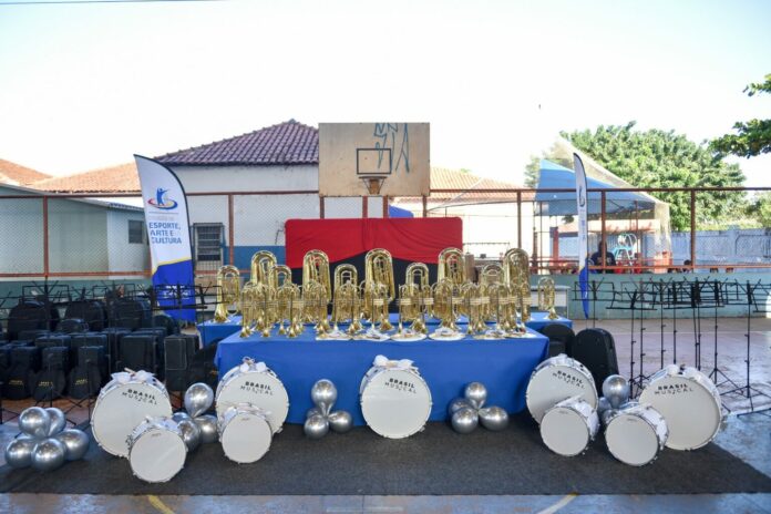Instrumentos à bandas marciais são entregues em escolas da Reme de CG