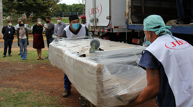 O Governo de Estado, por meio da Secretaria de Estado de Saúde, recebeu na manhã desta sexta-feira (26), do Frigorífico JBS 10 leitos de UTI’s para o Hospital Regional de Mato Grosso do Sul, que serão disponibilizados para o tratamento dos pacientes com coronavírus, assim como doações de insumos hospitalares que vão auxiliar o Estado no Enfrentamento a Covid-19.