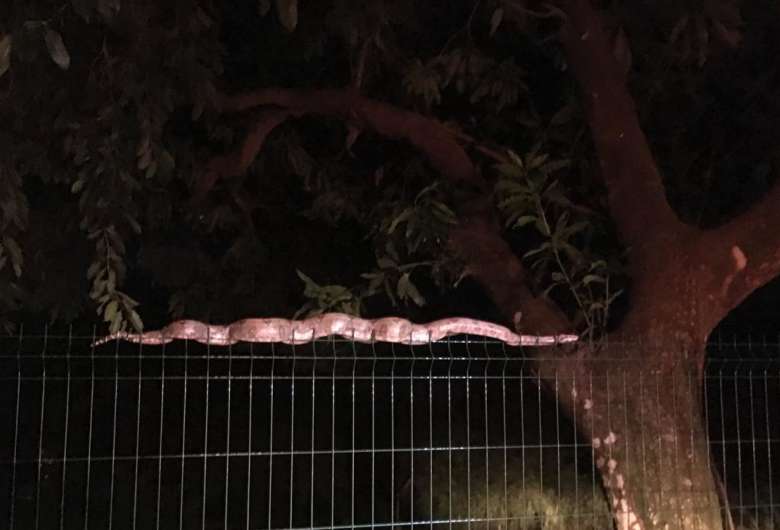 A Polícia Militar Ambiental (PMA) de Dourados encontro uma jiboia de mais dois metros em Universidade Federal da Grande Dourados (UFGD), na noite de ontem (6). A serpente foi capturada e devolvida ao ao habitat natural.