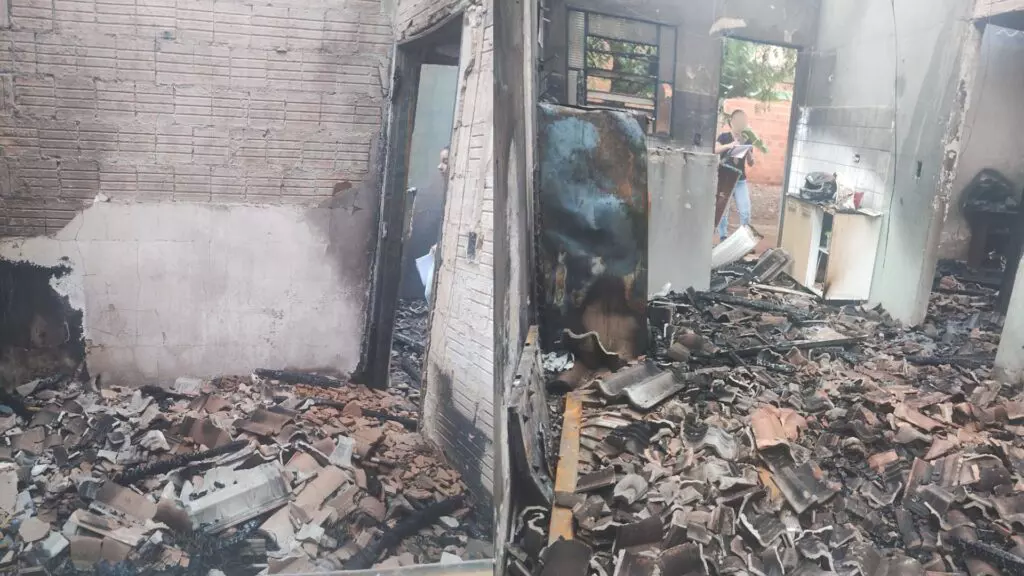 Uma jovem de 23 anos teve a casa totalmente destruída por incêndio na madrugada deste sábado (29), em Campo Grande. Segundo a versão dela, o fogo foi provocado de propósito pelo marido, de 34 anos, após uma discussão entre os dois.
