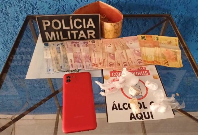 A Polícia Militar recebeu denúncia de que um motociclista estaria comercializando drogas pelo Setor Rodoviário, o qual utilizava o álibi de vender salgados como disfarce.