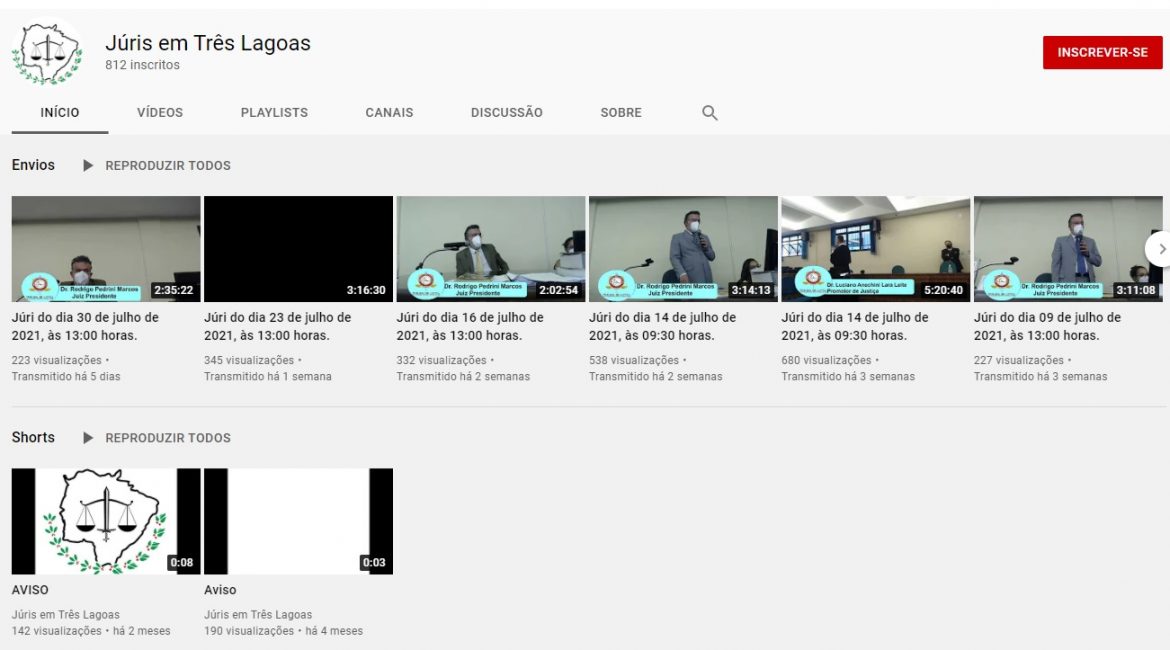 Com a pandemia, muitos Tribunais mudaram os julgamentos e sessões. O Juiz de Direito Rodrigo Pedrini Marcos decidiu criar um canal no youtube para transmitir as sessões do Tribunal do Júri da 1ª Vara Criminal de Três Lagoas. As transmissões são feitas ao vivo, de forma a garantir a máxima publicidade aos julgamentos da Comarca e levar ao conhecimento como funciona o Tribunal de Júri. Elas ainda ficam disponibilizadas integralmente na plataforma.