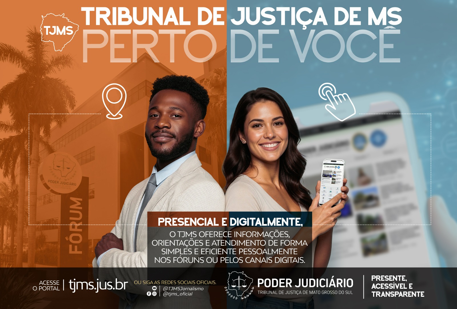 Com a campanha “Tribunal de Justiça de MS Perto de Você”, o TJMS garante sua atuação voltada ao cidadão, mostrando que a Justiça está ao alcance de todos, seja presencialmente, pelos canais digitais ou na palma da mão, sempre com foco na transparência, na eficiência e no fortalecimento do acesso aos serviços judiciais.stiça de MS Perto de Você”, o TJMS garante sua atuação voltada ao cidadão, mostrando que a Justiça está ao alcance de todos, seja presencialmente, pelos canais digitais ou na palma da mão, sempre com foco na transparência, na eficiência e no fortalecimento do acesso aos serviços judiciais.