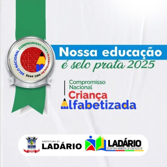 Rede Municipal de Ensino de Ladário foi reconhecida nacionalmente com o selo de prata do Selo Nacional Compromisso com a Alfabetização – Criança Alfabetizada. O reconhecimento evidencia os avanços do município nas políticas educacionais voltadas à alfabetização das crianças na idade adequada.